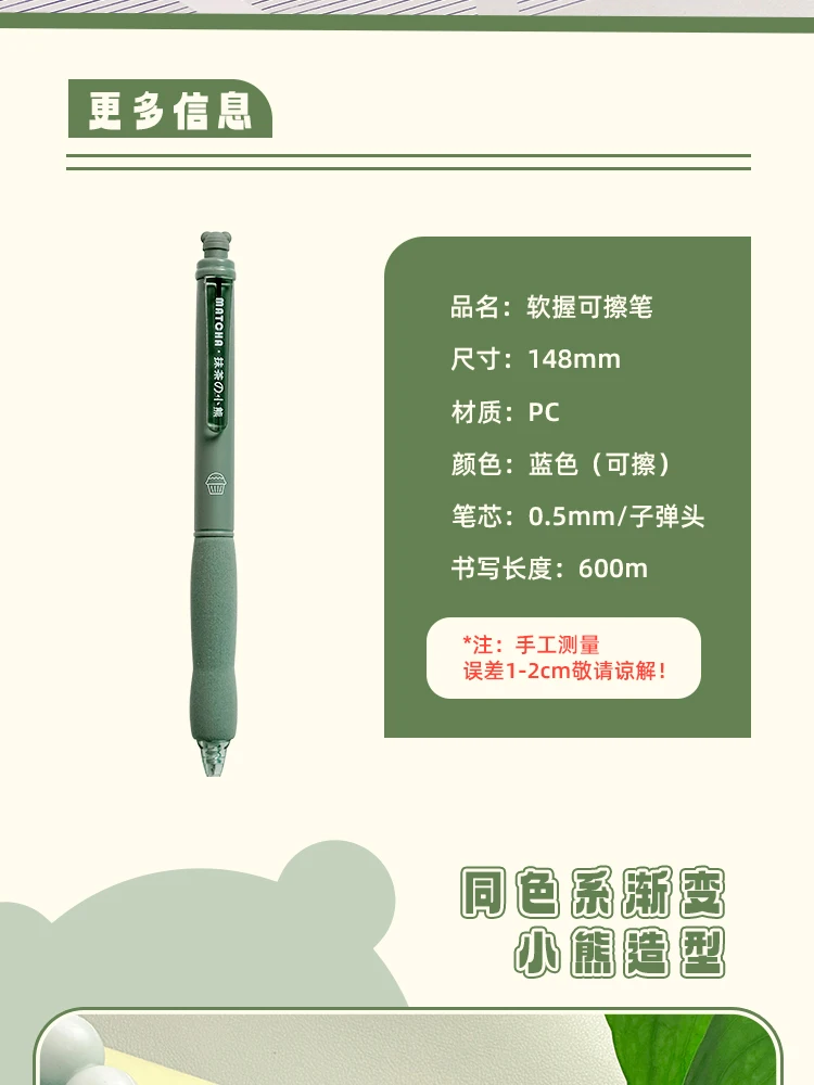 Soft grip erasable pen:Smooth writing,Comfortable grip,Wipe clean without damaging the paper