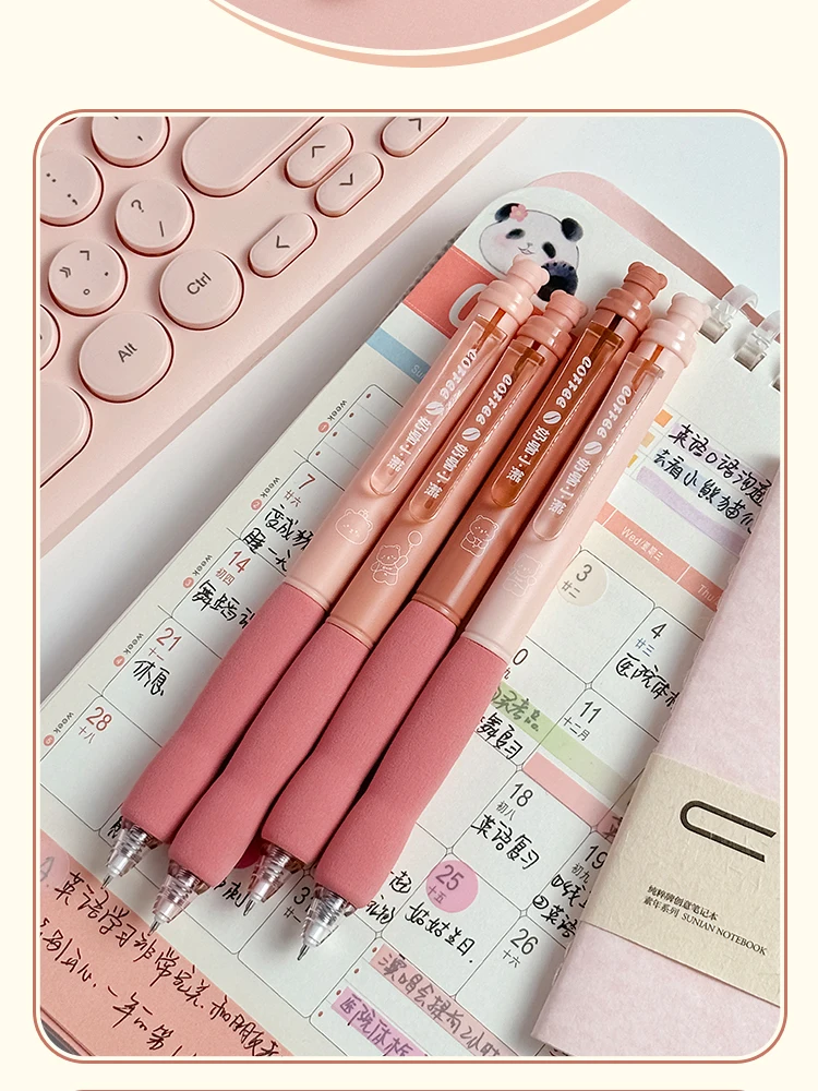 4 Pack Simplicity Coffee Color Brown Bear Erasable Gel Pen 0.5mm Blue/Blue Soft Grip Signature Pens for Cute Girl Students