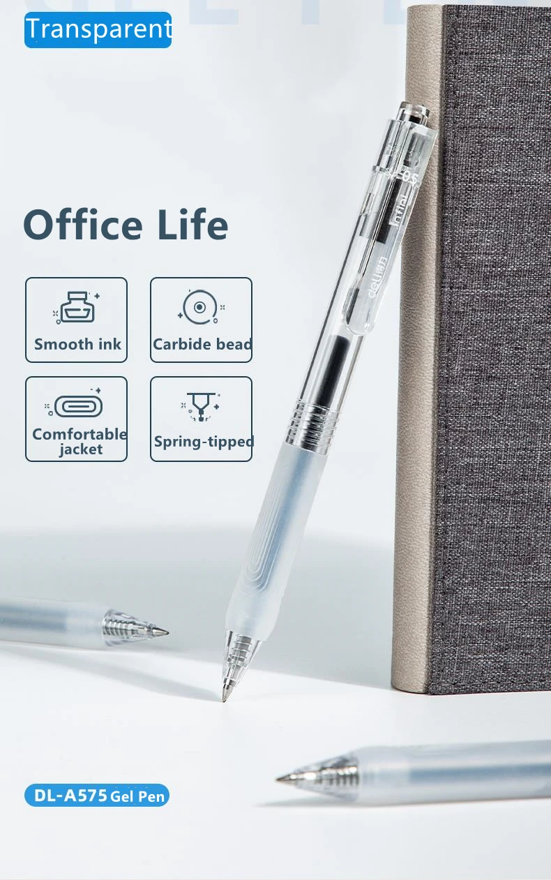 Clear DELI Retractable Gel Ink Pens Black Blue Bullet Tip Office Writing Pen 0.5 mm Replaceable Refills School Supplies,Transparent