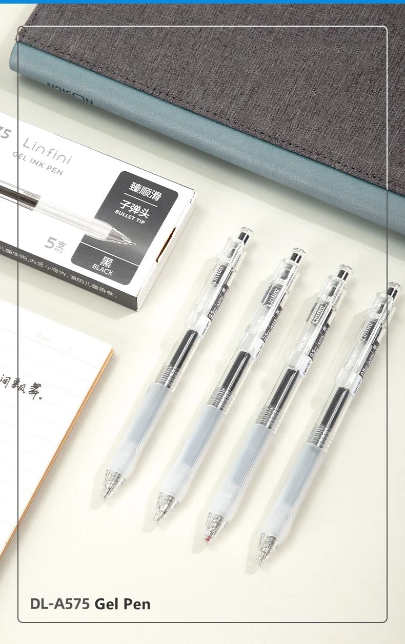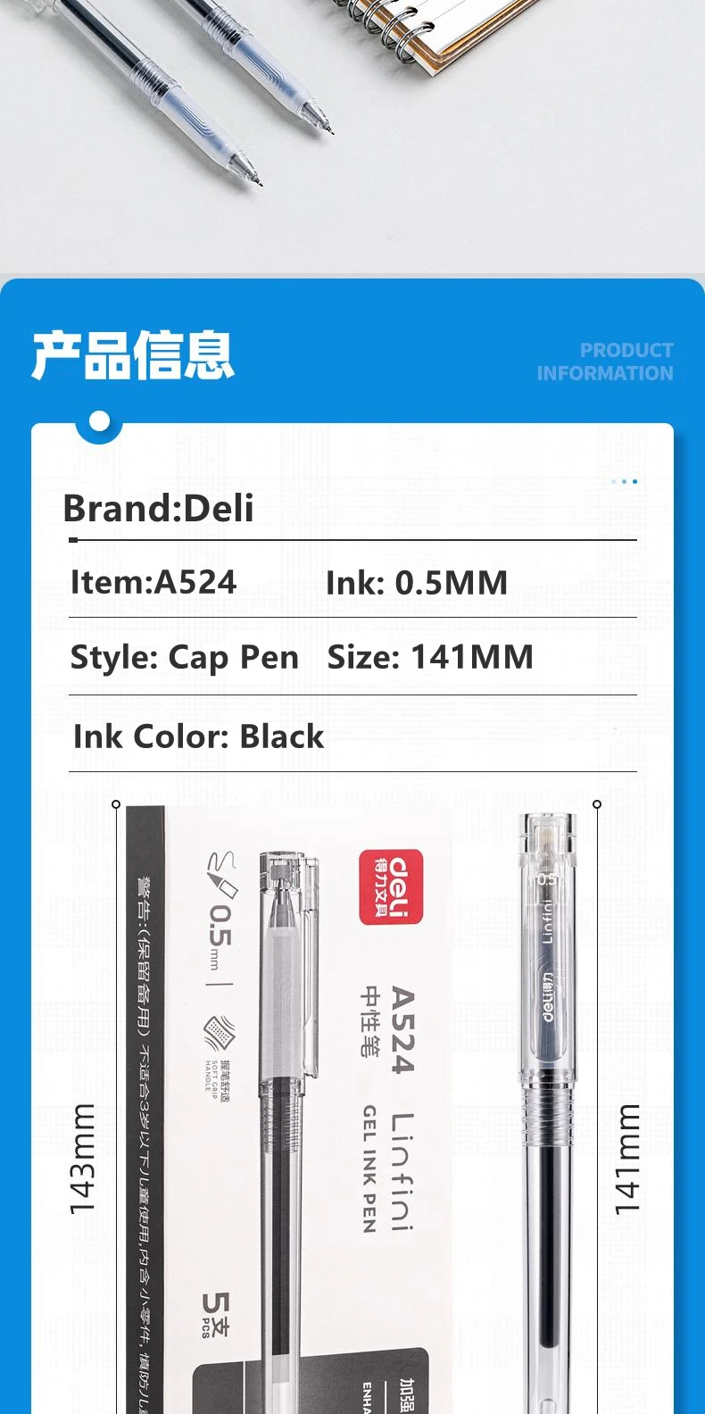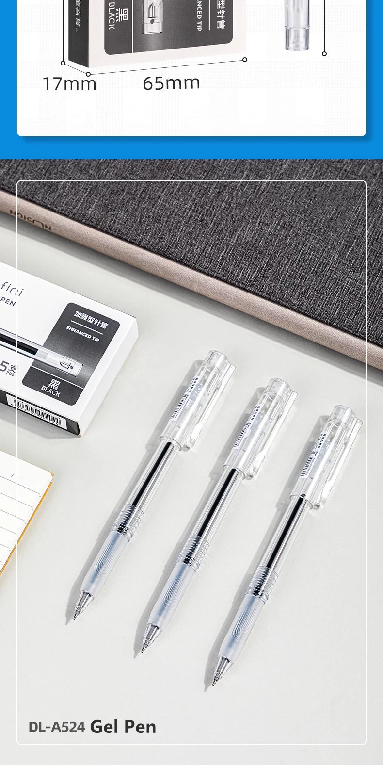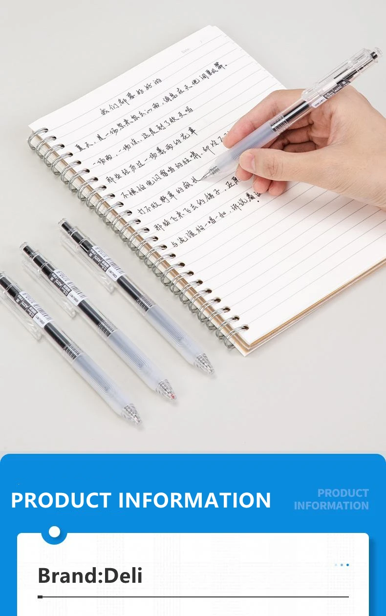 Clear DELI Retractable Gel Ink Pens Black Blue Bullet Tip Office Writing Pen 0.5 mm Replaceable Refills School Supplies