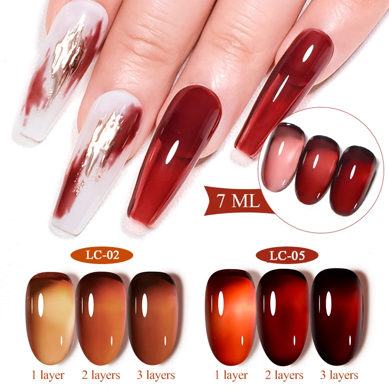 LILYCUTE 7ML Jelly Amber Gel Brown Winter Crystal Nail Polish Translucent Color Nail Art Gel Permanent UV Gel Polish Varnish
