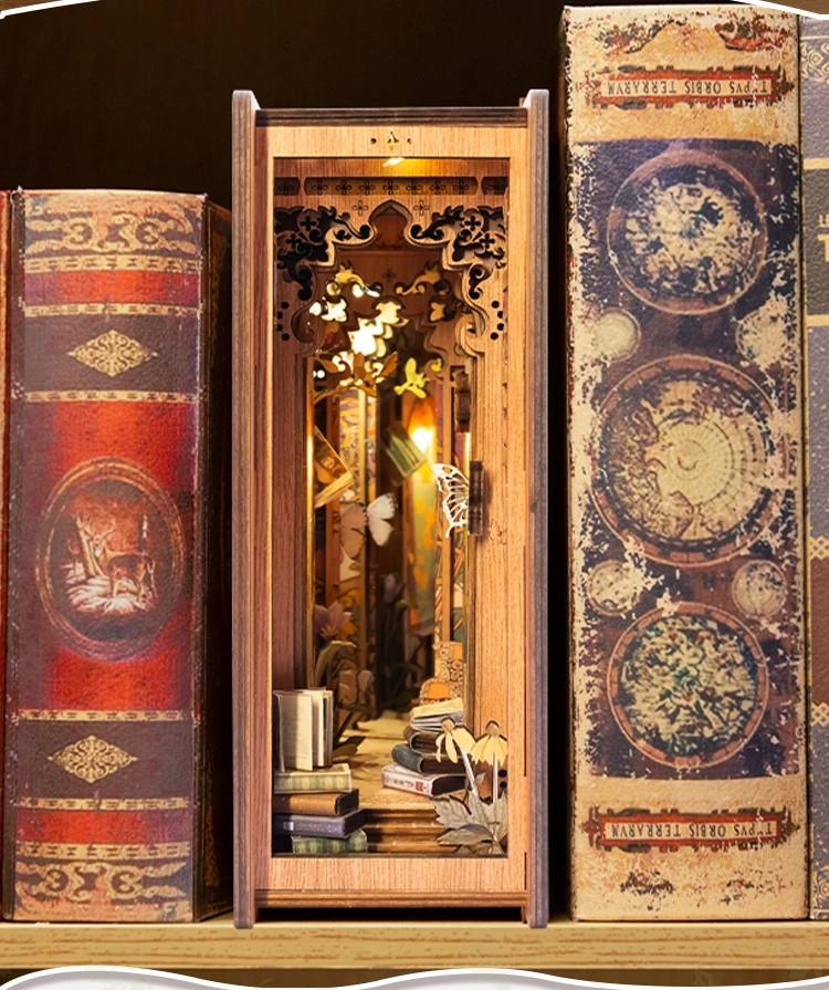 Retro Book Nook Shelf Insert Kits Miniature Dollhouse Eternal Library with Furniture Bookends Model Building Toys Girls 1pcs,Retro Book Nook Shelf Insert Kits Miniature Dollhouse Eternal Library with Furniture Bookends Model Building Toys Girls 1pcs