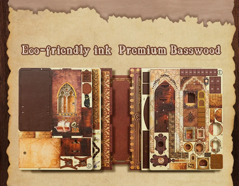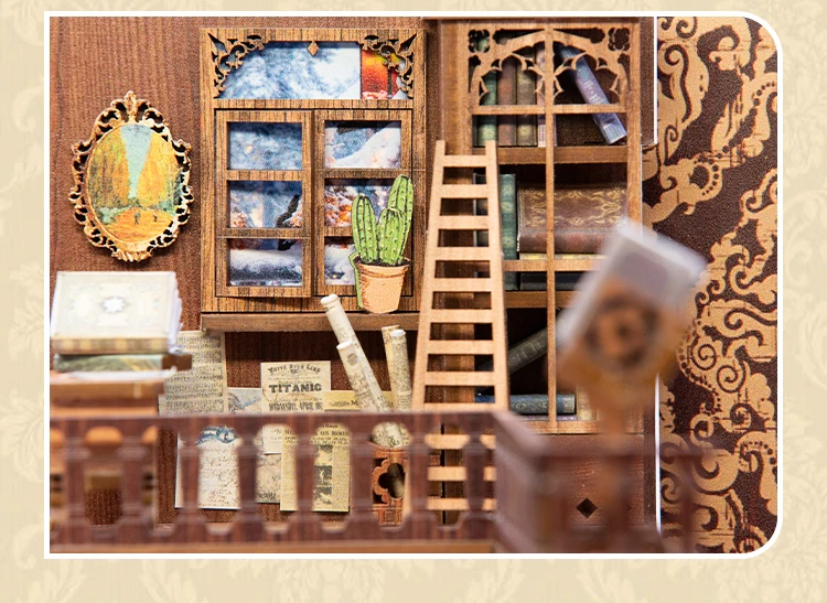 Retro Book Nook Shelf Insert Kits Miniature Dollhouse Eternal Library with Furniture Bookends Model Building Toys Girls 1pcs