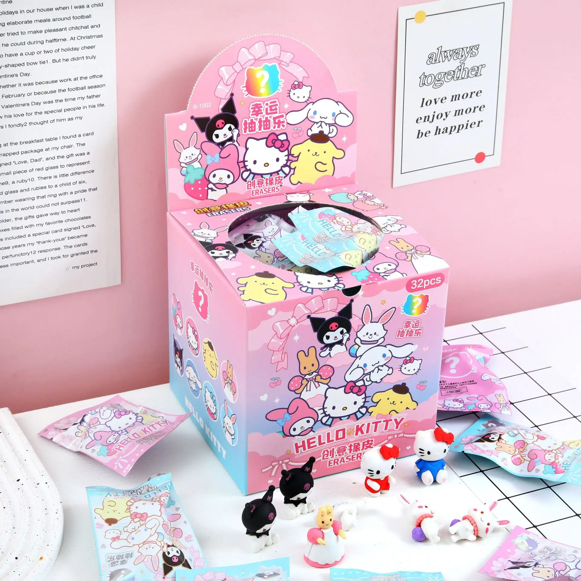 Cartoon Eraser Rubber 16/32pcs Kawaii Students Stationery Kuromi Hello Kitty 3d Eraser Clean Tools School Children Gifts
