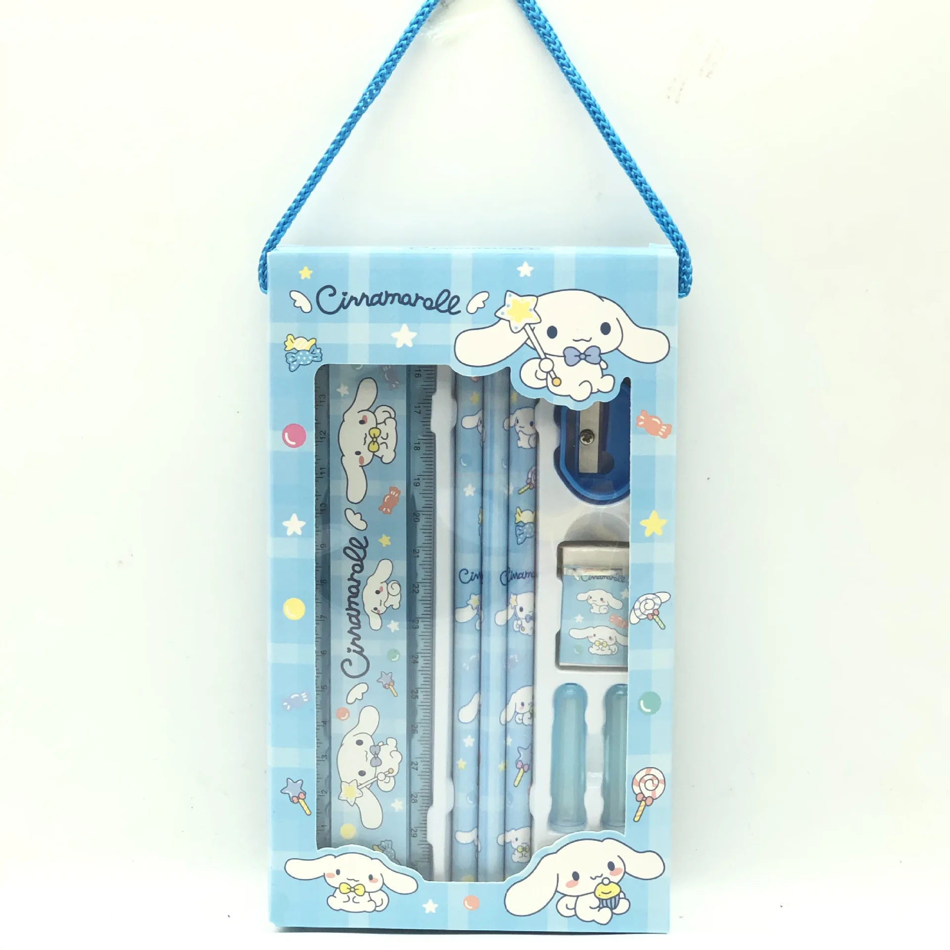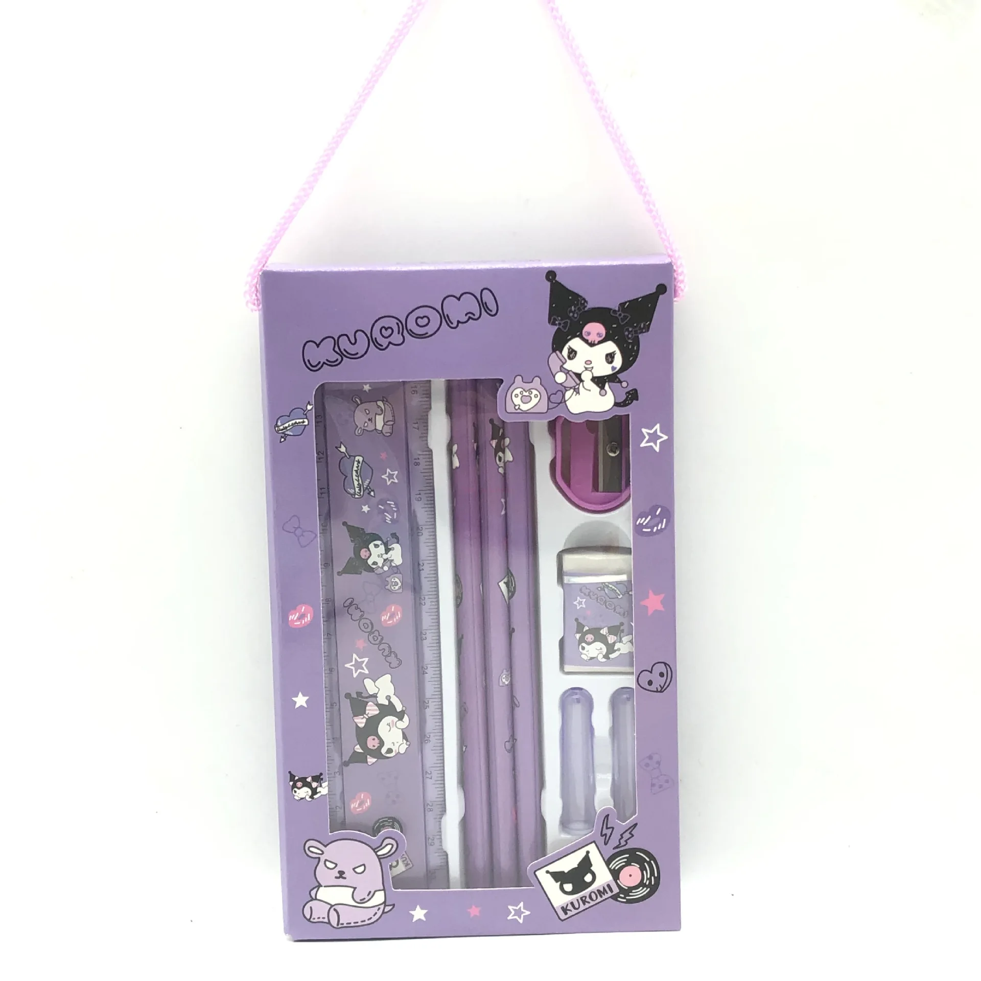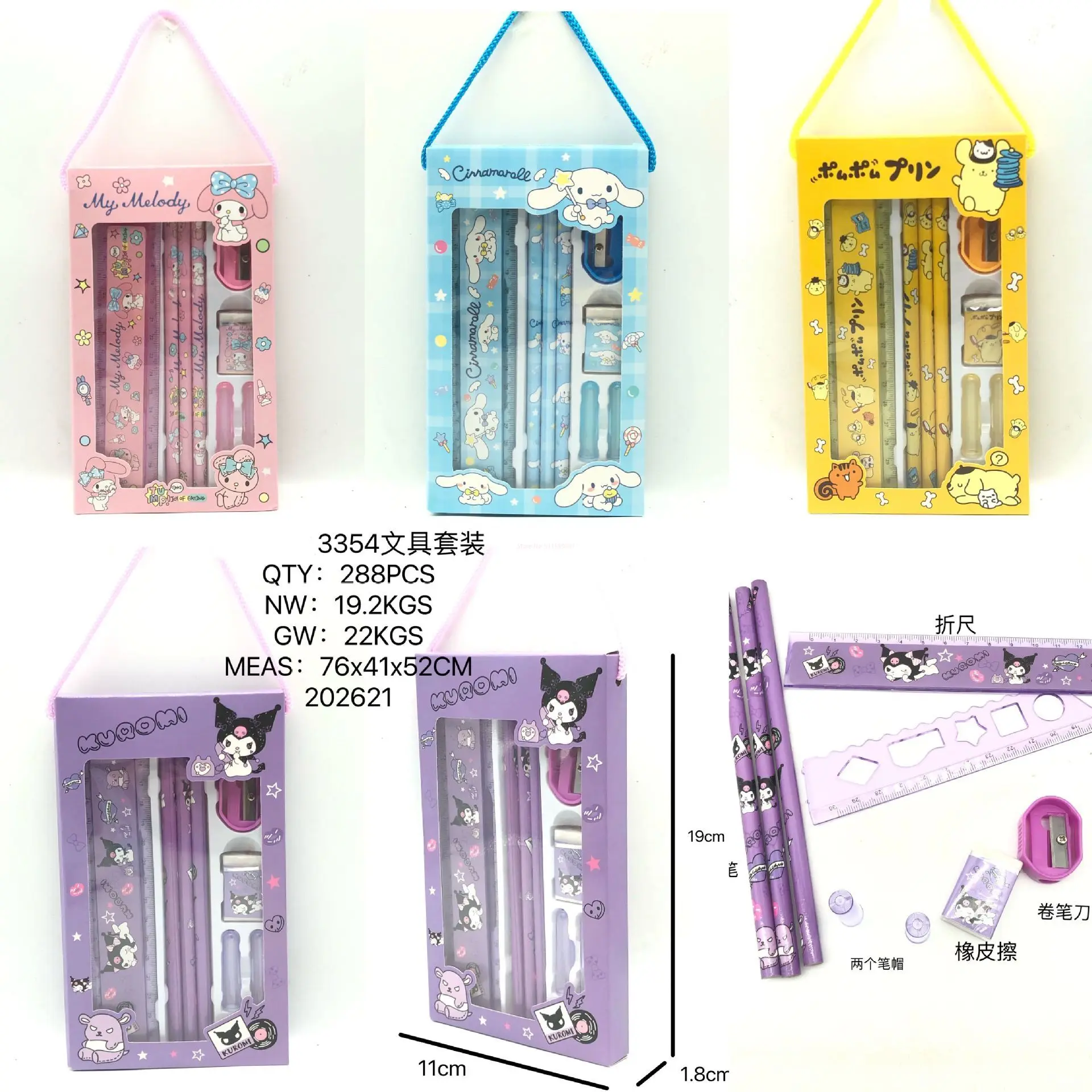 Sanrio Pencil Stationery Set Kawaii Cinnamorroll Melody Kuromi Cartoon Eraser Ruler Children’s School Supplies Gift Wholesale