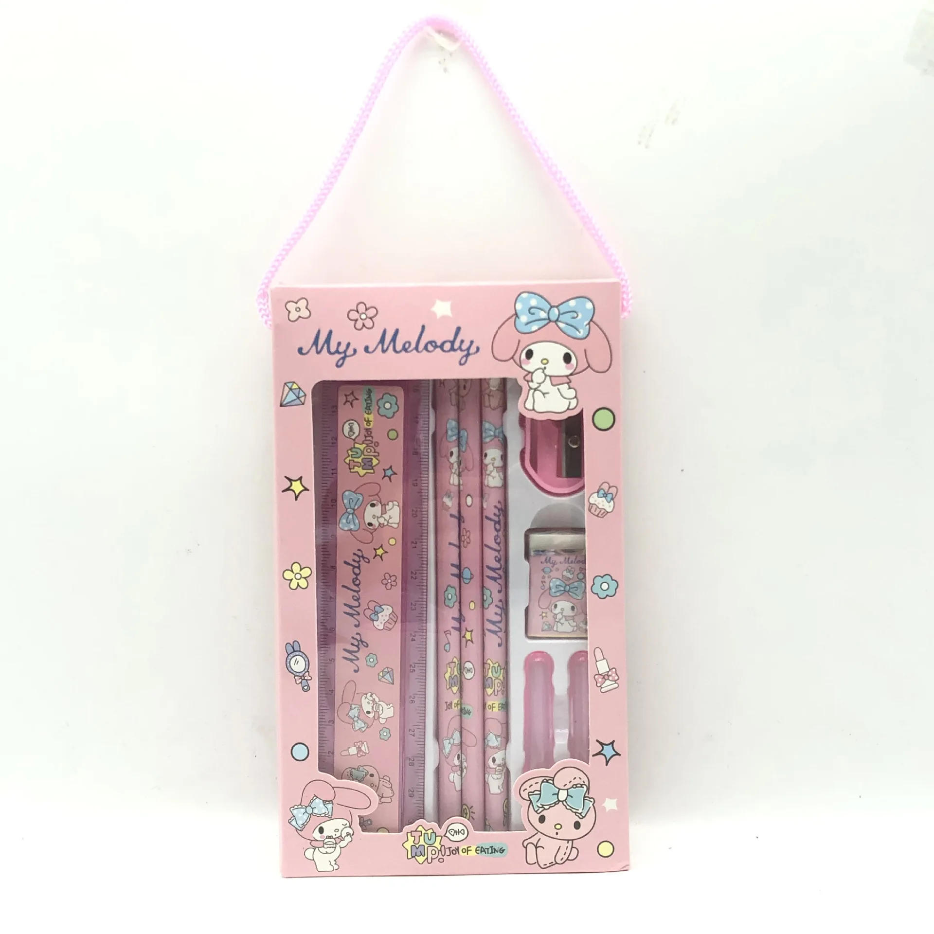Pencil Stationery Set Kawaii Cinnamorroll Melody Kuromi Cartoon Eraser Ruler 8pcs