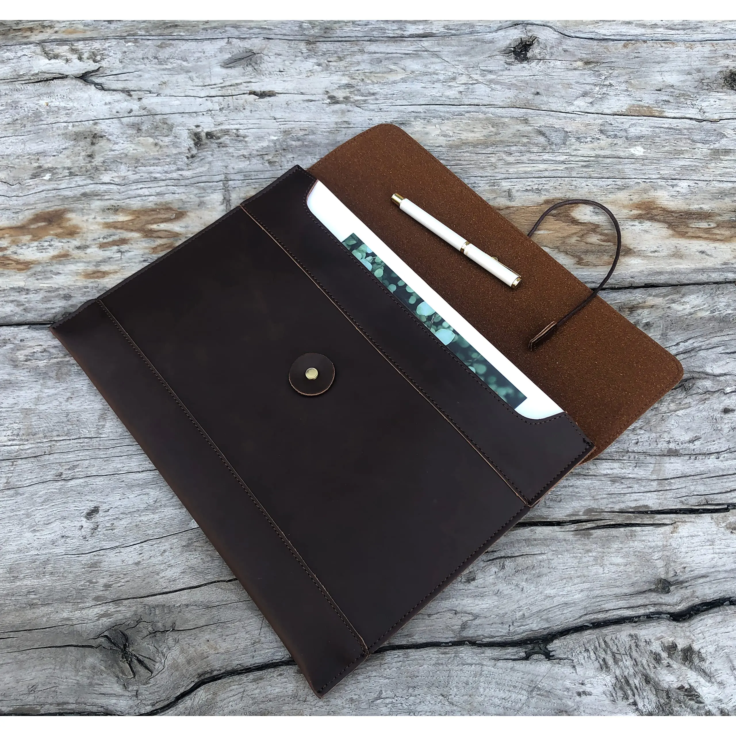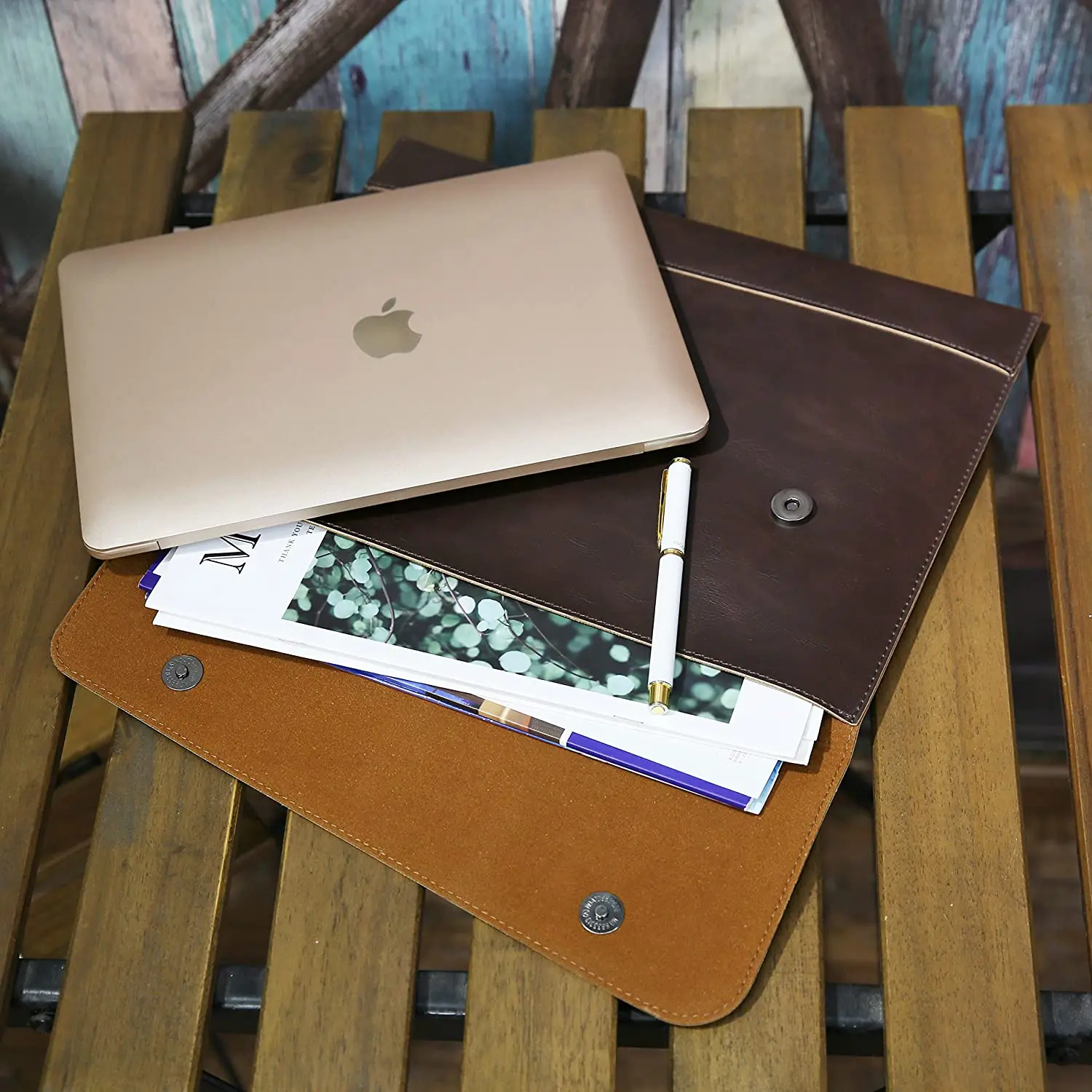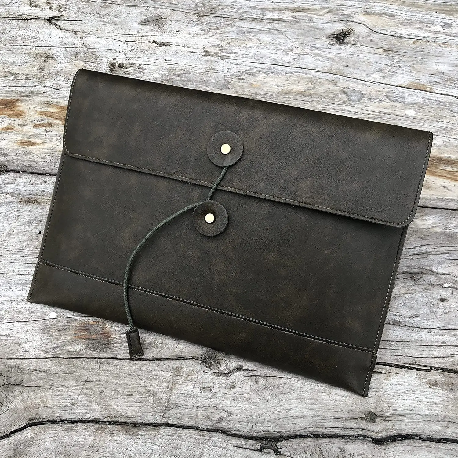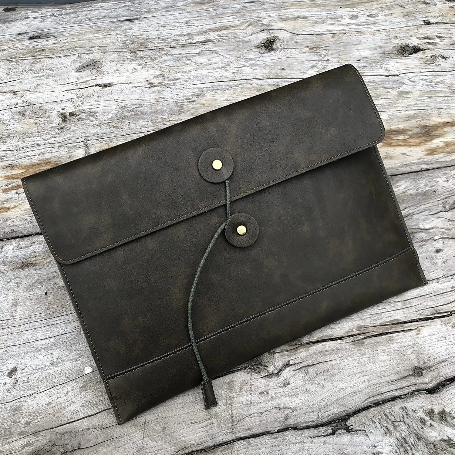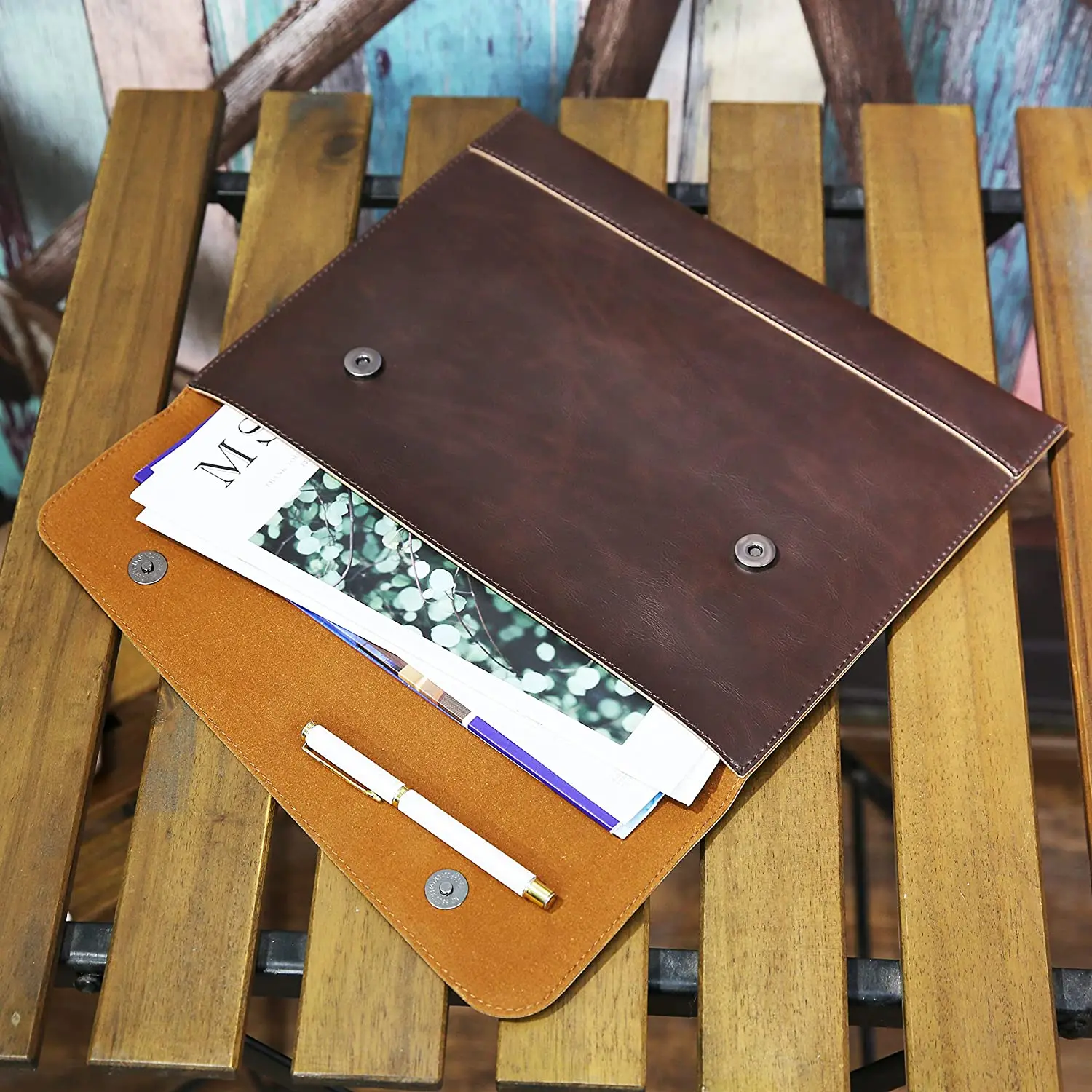 Xiao.P 13.5 inch Vintage Leather Certificate File Sleeve Case Business Manila Clutch Envelope Bag Office Documents Folder