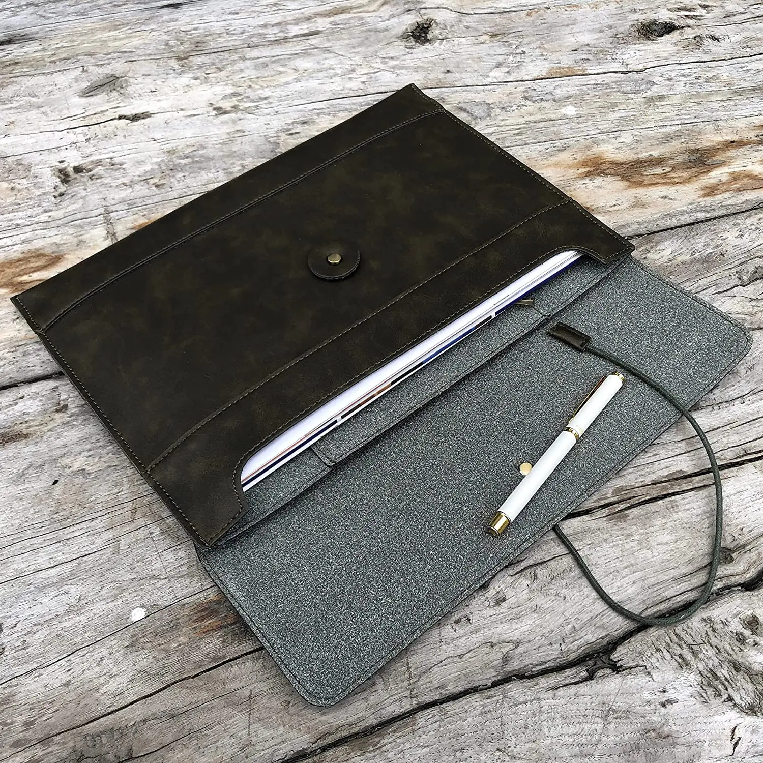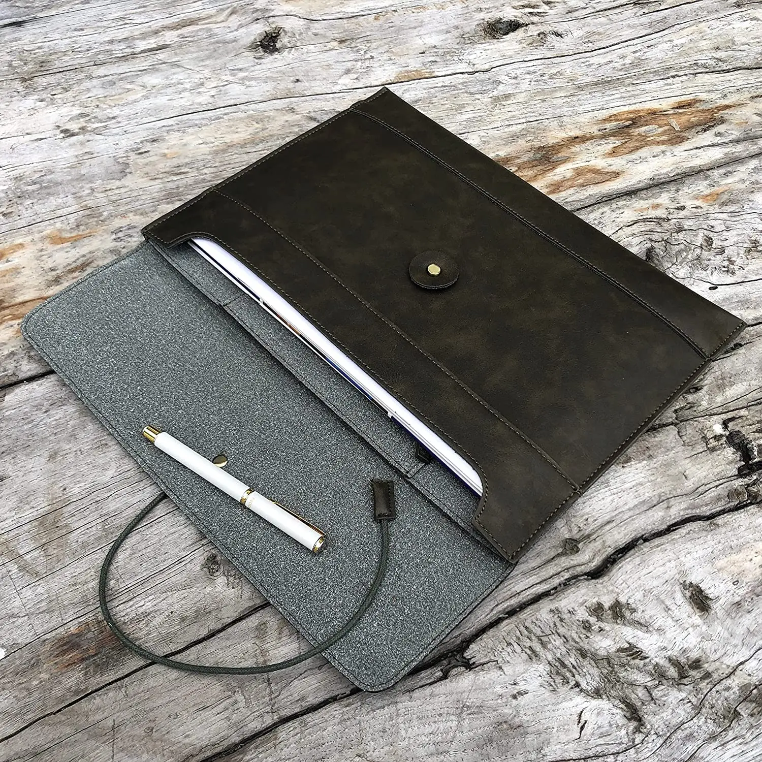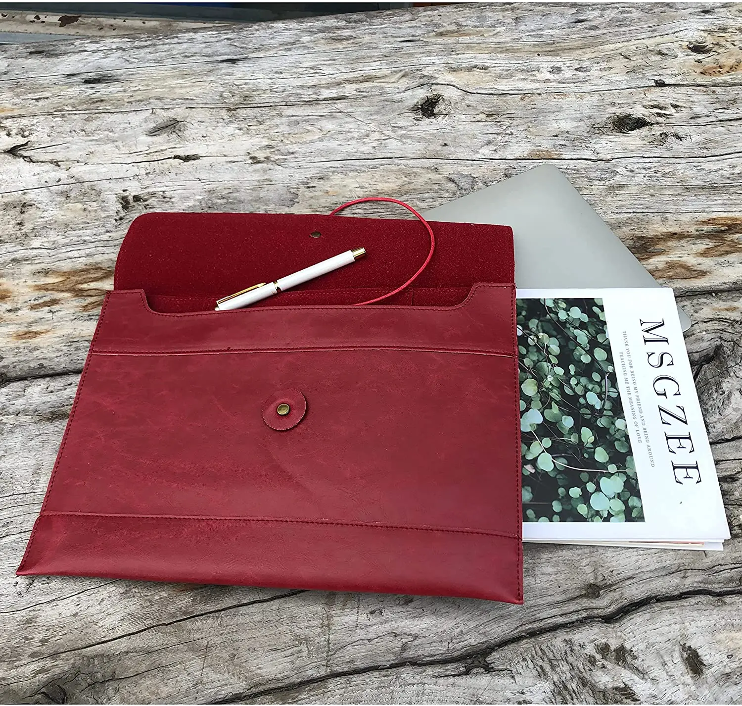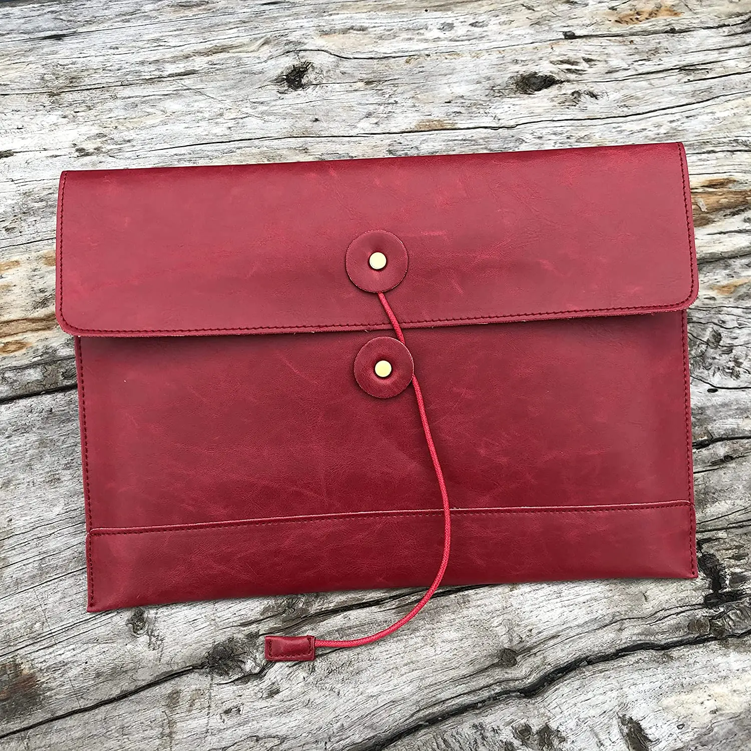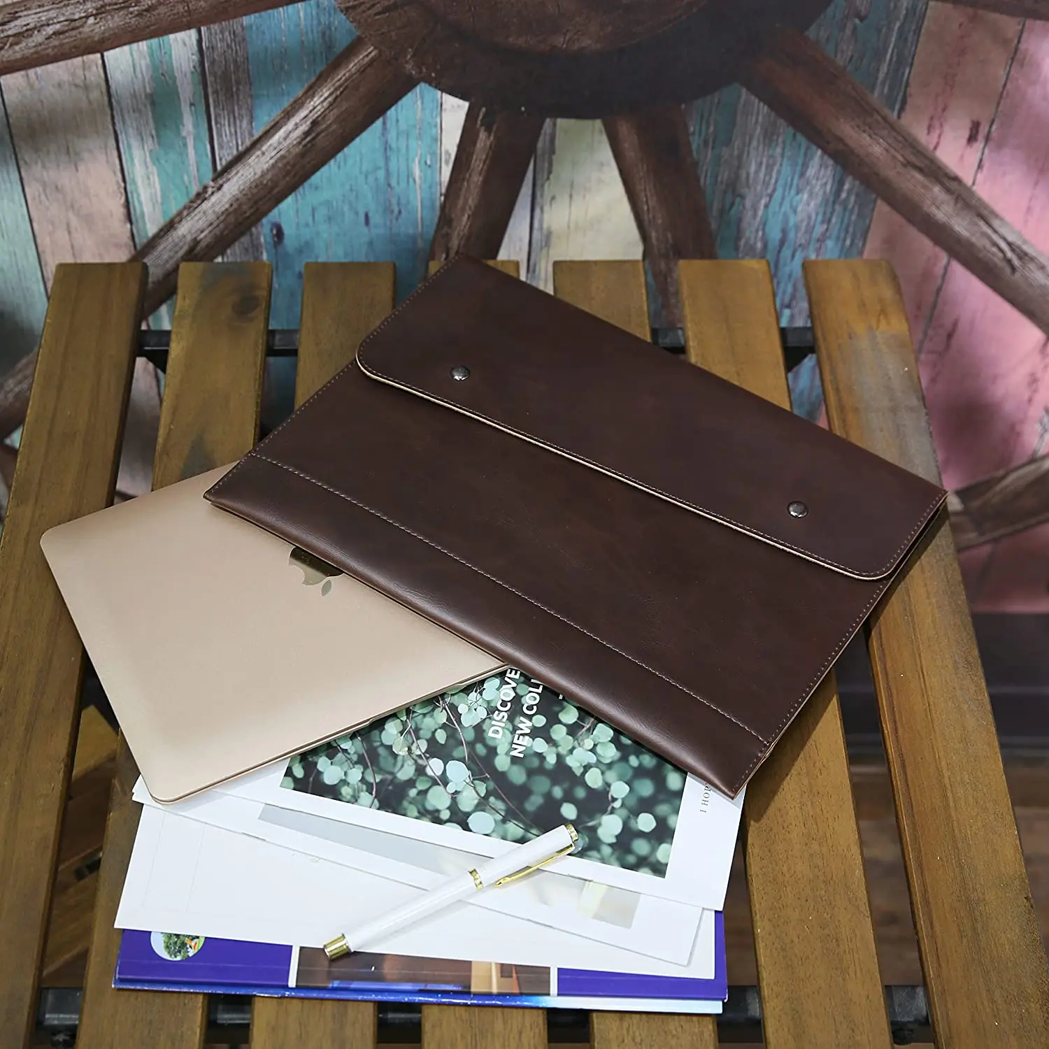 Xiao.P 13.5 inch Vintage Leather Certificate File Sleeve Case Business Manila Clutch Envelope Bag Office Documents Folder