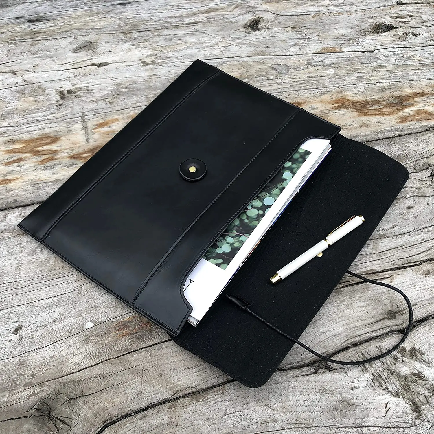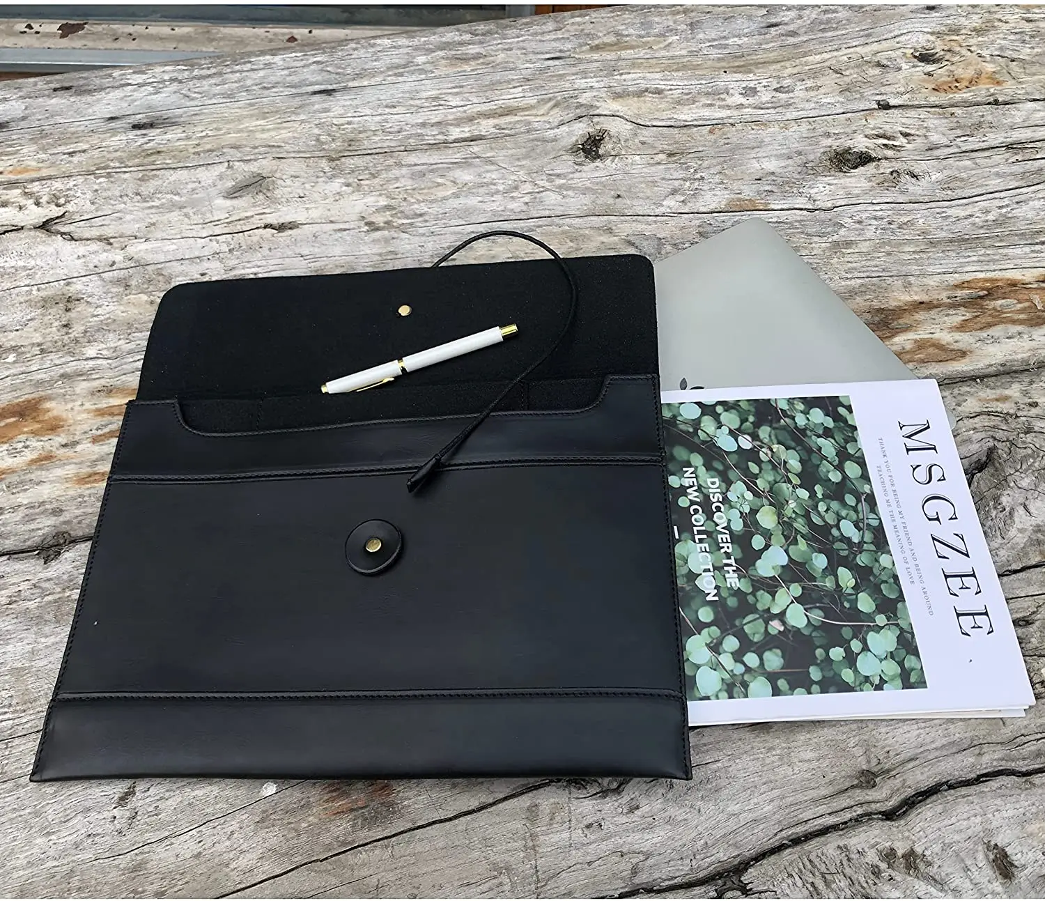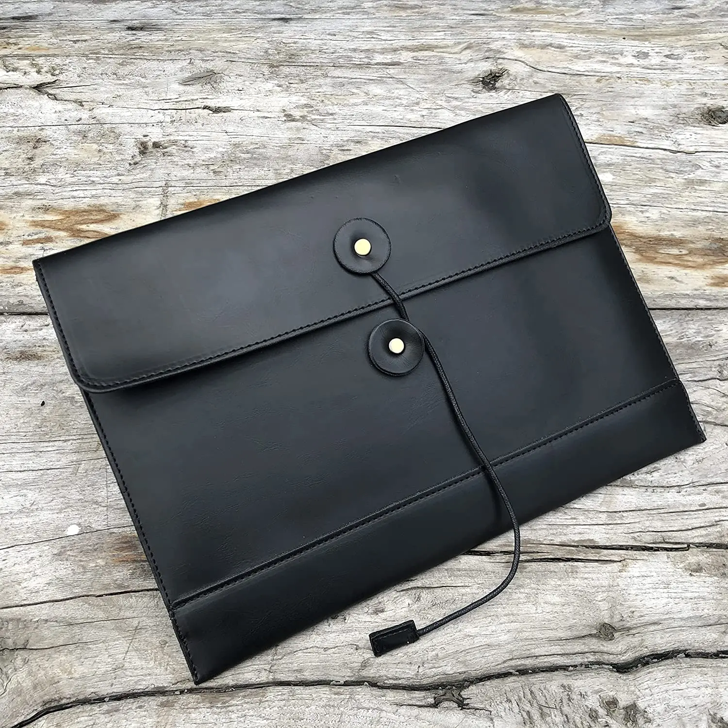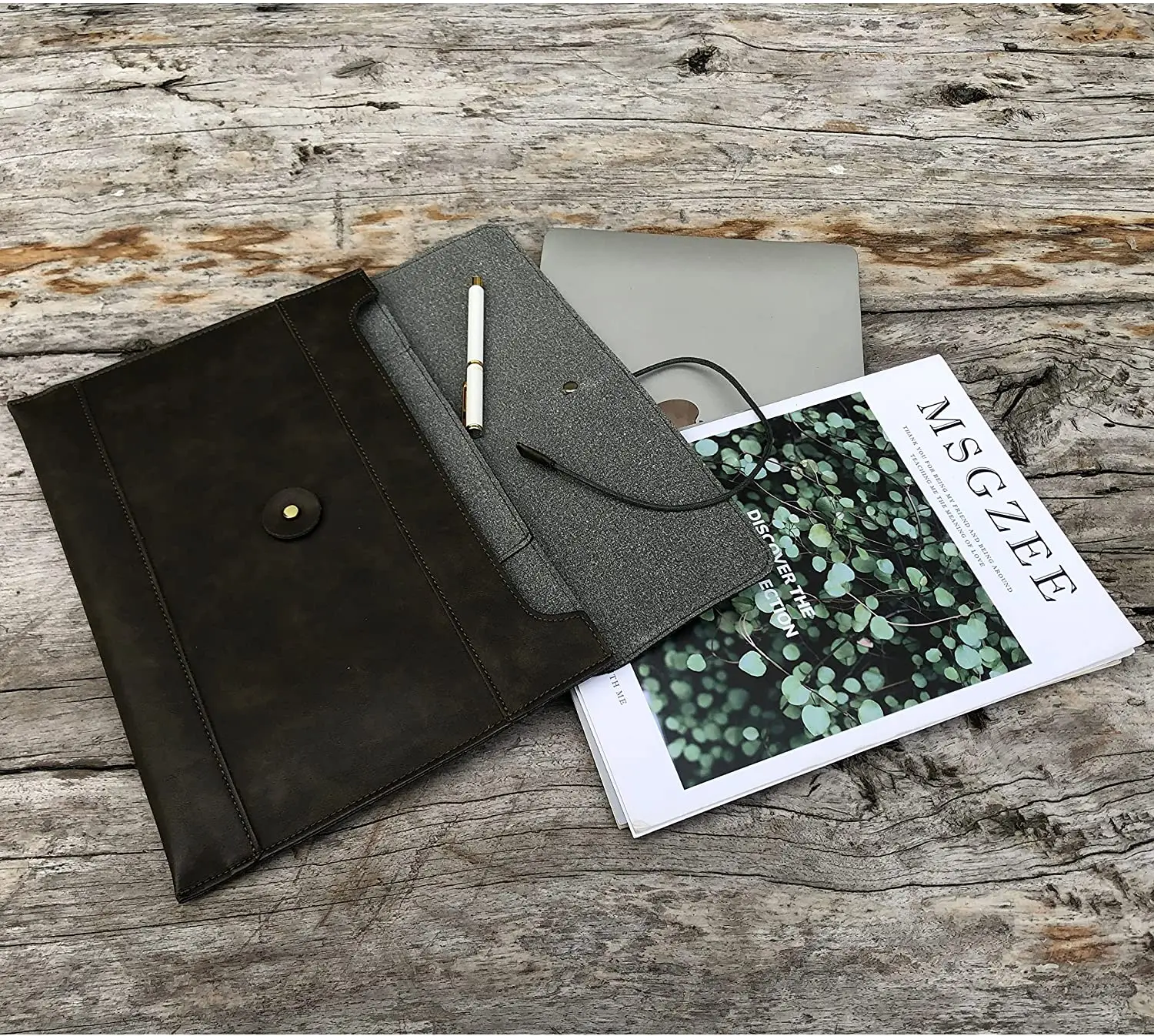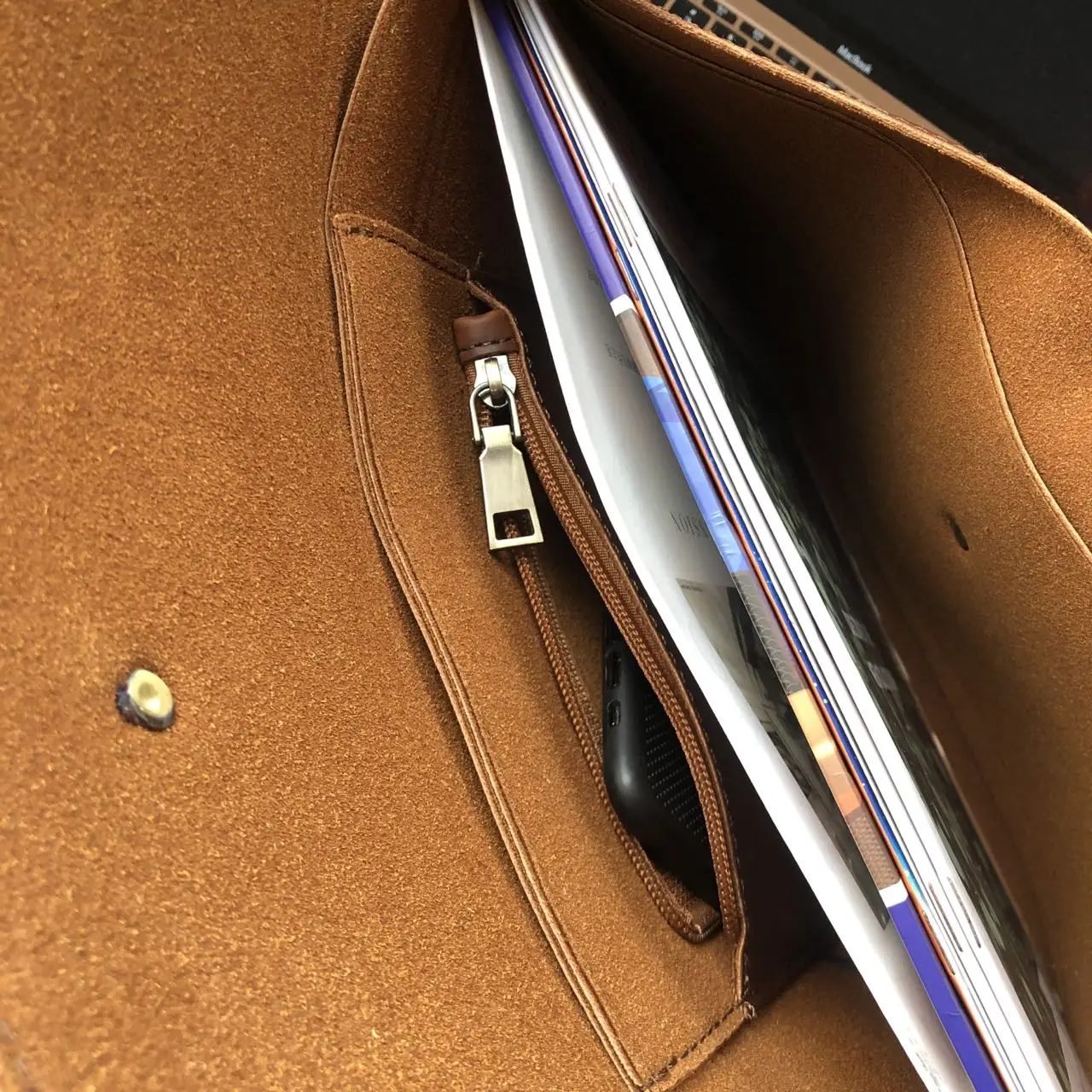 Vintage Leather Certificate File Sleeve Case Business Manila Clutch Big Capacity Envelope Bag